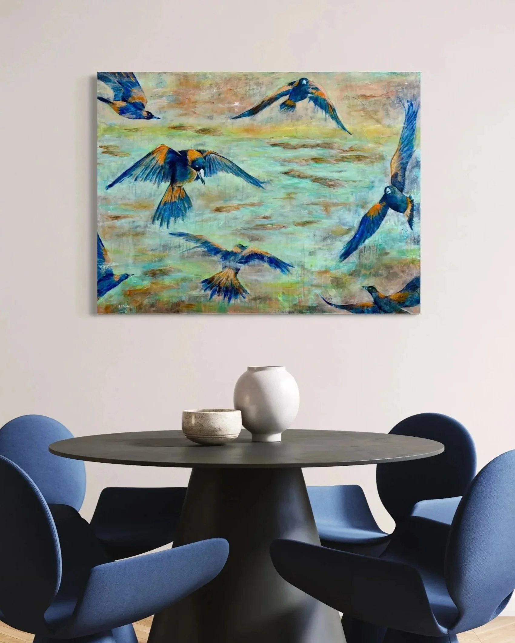 “I had never bought art online before and the experience with Karen is white glove. Seeing the painting live exceeded my expectation. The vividness of the colors make them feel alive, like a palpable presence with me each day. Combined with Karen’s personal card, it felt like we were able to connect over the work, even without having met in person. Overall a fantastic experience that I highly recommend to all. ”